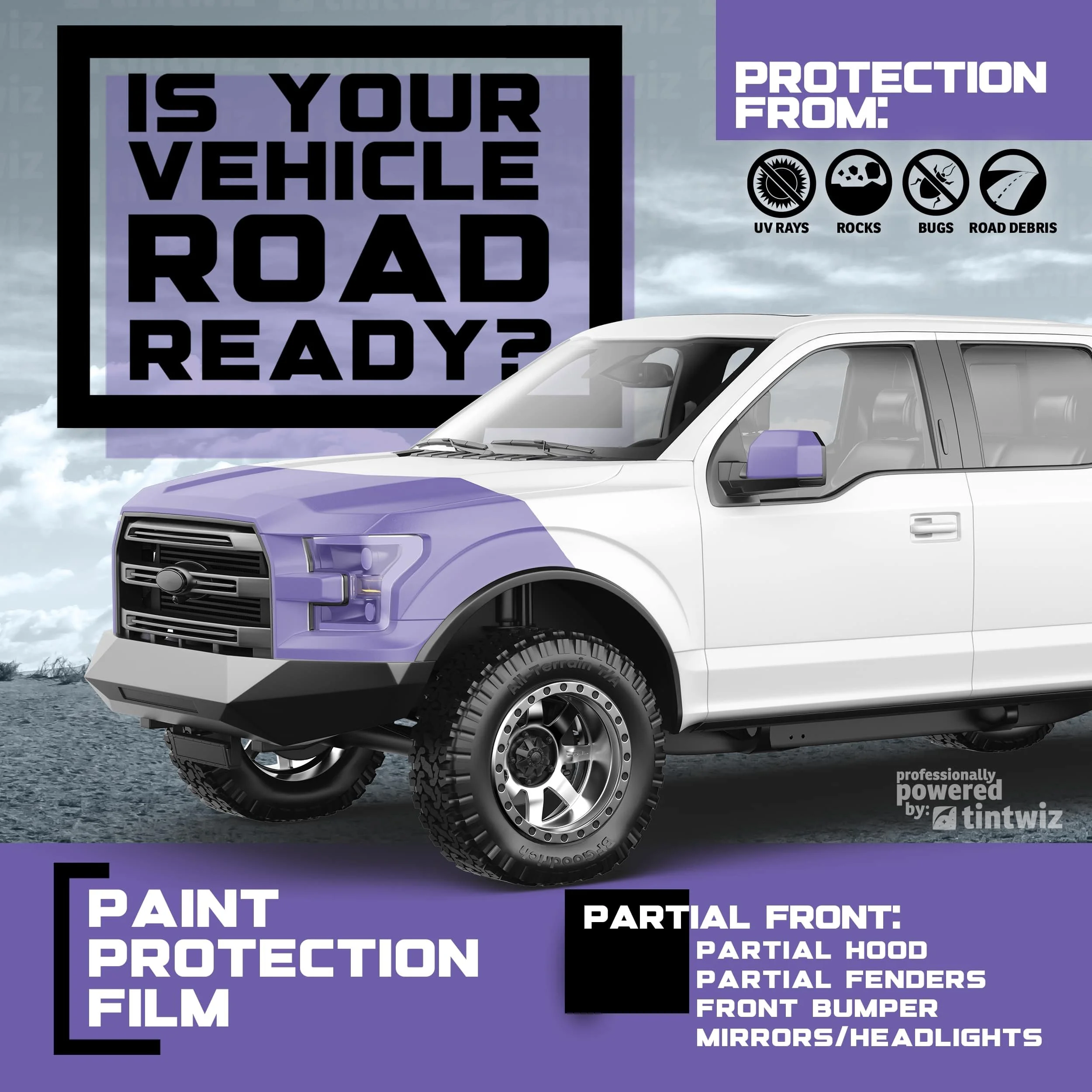 Paint Protection Film is a durable, transparent or colored film applied to your vehicle's exterior to protect against damage from road debris, scratches, weather, and more. It's the perfect solution for anyone looking to preserve their vehicle’s finish and value.